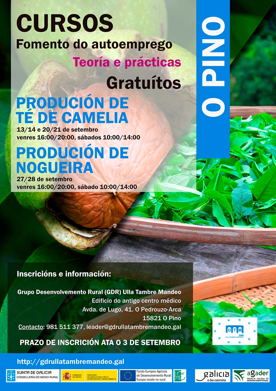 O GDR Ulla Tambre Mandeo abríu o prazo de inscrición para os curso de Produción de camelia para té e Produción de nogueira. Os cursos, ambos do ámbito forestal, teñen como obxectivo que o alumnado asistente coñeza e se forme na plantación e cultivo de ambas producións, de xeito que se favoreza a posta en marcha de novos usos do monte e se diversifiquen as producións a aproveitamentos que se fan do mesmo.