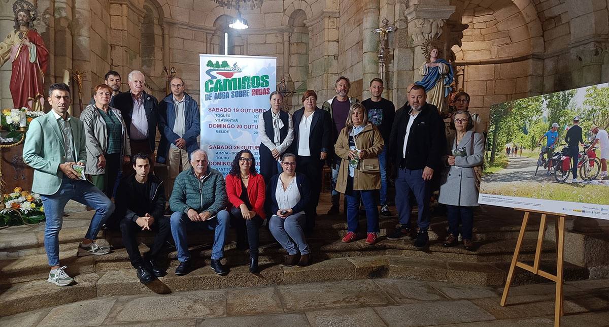 Na Igrexa románica de Santa María de Mezonzo, no Concello de Vilasantar, O GDR Ulla Tambre Mandeo presentou esta mañá unha serie de sete rutas de cicloturismo baixo o título “Camiños de Auga sobre rodas”, que percorrerán os oito concellos do xeodestino.